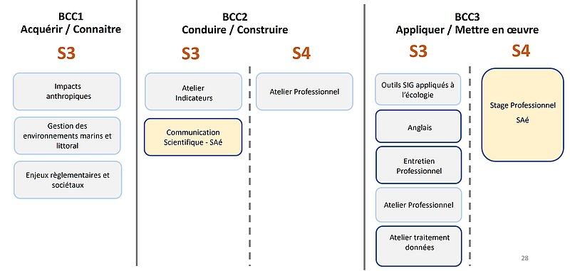 Il assure une formation de pointe en Sciences Marines et a pour objectif de former des cadres écologues entrant sur le marché du travail à BAC+5 avec des compétences généralistes dans le domaine de la gestion de l’Environnement et une spécialité en écologie marine. Il forme aux métiers de la gestion et de la conservation des espaces naturels littoraux et marins.